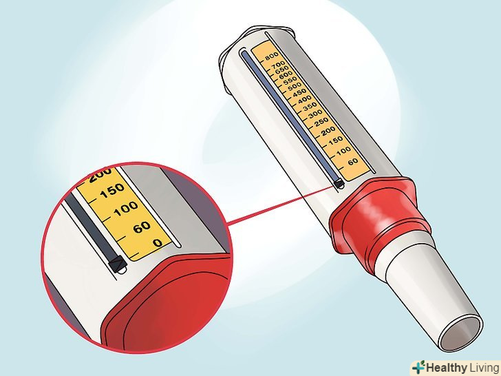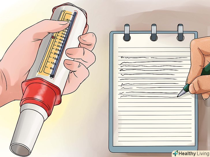 Проводьте вимірювання щодня.щоб простежити за змінами в своєму диханні і визначити, чи поліпшується ваш стан, залишається таким же або погіршується, слід регулярно проводити вимірювання. Рекомендується використовувати пікфлоуметр двічі на день, вранці і ввечері.[13]- Показання будуть точніше, якщо ви будете знімати їх в один і той же час кожен день.
