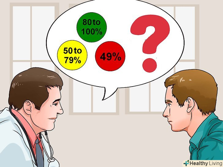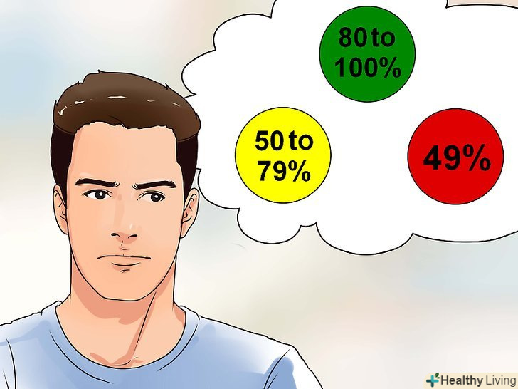 Відзначте свій інтервал показань.після визначення максимальної швидкості видиху ви зможете надалі оцінювати свій стан. У багатьох пікфлоуметрах є вбудований індикатор і інші опції, які допоможуть вам отримувати якомога більш точні результати і стежити за своїм станом.[17][18]- На пікфлоуметрі є три "зони", кожна з яких відповідає певній частці кращого результату. Зелена зона відповідає 80-100% максимального значення; жовта зона відповідає 50-79% максимуму; значення в червоній зоні не перевищують 49%.