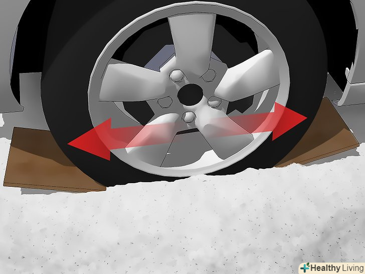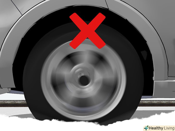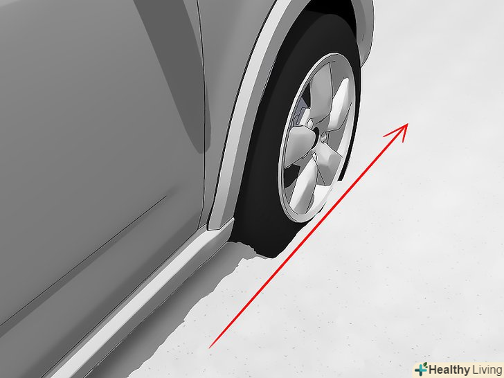 Не допускайте, щоб шини пробуксовували на одному місці.якщо колеса пробуксовують, а машина так і не просувається вперед або назад, негайно зупиніться. Інакше шини виявляться в ще більшій кількості снігу.[10]