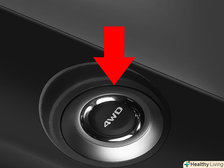 Увімкніть повний привід (якщо він є в автомобілі).якщо у вас повнопривідний автомобіль з приводом на всі чотири колеса, Ви повинні активувати його, перш ніж намагатися виїхати зі снігу. Зрештою, чим більше коліс буде обертатися, тим більше буде площа зчеплення з поверхнею і тим простіше вам буде вибратися зі снігу.[4]