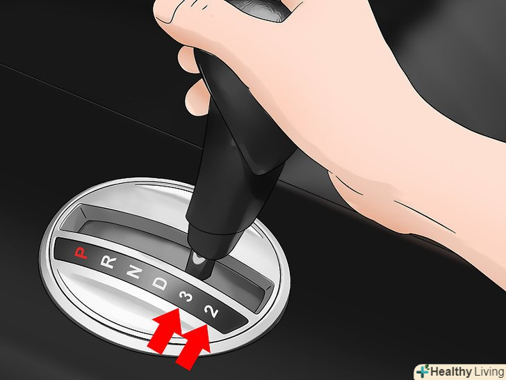 Увімкніть першу передачу.замість того щоб відразу спробувати виїхати, переконайтеся в тому, що машина стоїть на першій передачі. На першій передачі колеса будуть обертатися повільніше, що додасть їм більше сили. Так ви зменшите ризик ще глибше загрузнути в снігу, розкопавши шинами ями.[5]