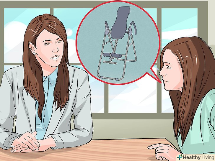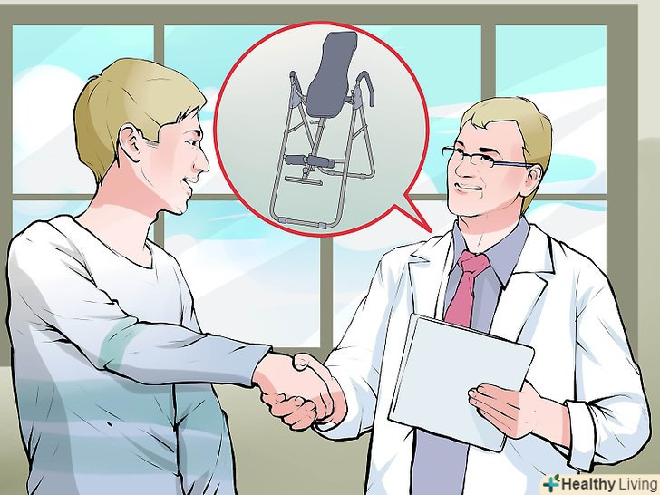 Проконсультуйтеся зі своїм сімейним лікарем.якщо ви відчуваєте помірну або сильну біль у спині, яка триває більше одного тижня, і ваш стан не поліпшується (або стає гірше), запишіться на прийом до лікаря. Хоча терапевт і не спеціалізується по хребту, він огляне вас, направить на рентгенологічне дослідження і виключить ймовірність серйозних захворювань і травм, при яких може знадобитися медична допомога. Хоча навряд чи лікар порекомендує вам користуватися інверсійним столом, поцікавтеся у нього, Чи безпечно використовувати цей стіл у вашому випадку.- Не слід використовувати інверсійний стіл в наступних випадках: вагітність, грижа (розрив черевних м'язів), глаукома, відшарування сітківки, кон'юнктивіт, гіпертонія, перенесений інсульт або серцевий удар, порушений кровообіг, пошкодження спинного мозку, розсіяний склероз, набряк суглобів (ревматоїдний артрит), остеопороз (крихкі кістки), незагоєні переломи, сколіоз (викривлення хребта), інфекція середнього вуха, сильне ожиріння.[9][10]