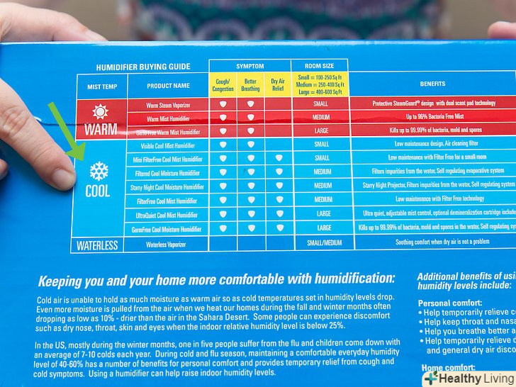 - Якщо паровий випарник виявиться неефективним, спробуйте використовувати зволожувач з холодним випаровуванням. Хоча він працює за схожим принципом і настільки ж ефективний,[13] деякі знаходять його більш комфортним для дихання, ніж гарячий паровий випарник.