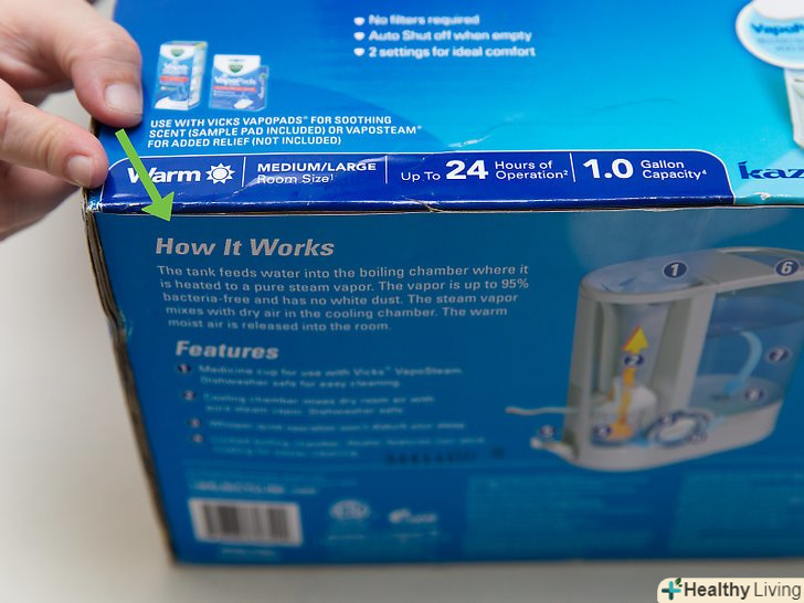 Ознайомтеся з різними видами парових випарників.витратьте трохи часу на те, щоб прочитати інформацію на упаковках і, можливо, огляньте сам випарник. Після цього ви зможете зробити більш обгрунтований вибір, виходячи з міркувань про своє здоров'я і комфорт.- Візьміть до уваги кількість місця, яке ви збираєтеся виділити для роботи і зберігання випарника. Більші моделі важче тримати поза досяжністю дітей, в той час як невеликий випарник може принести мало користі через те, що буде створювати недостатньо пара.