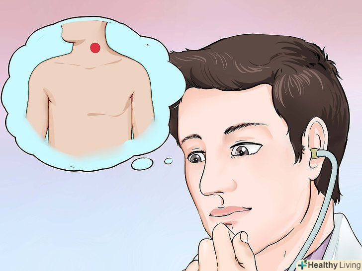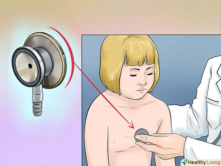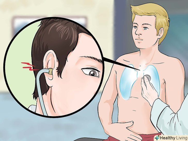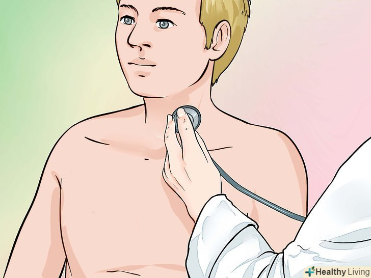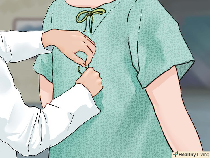 Нехай ваш пацієнт одягне лікарняний халат або підніме сорочку, щоб оголити шкіру.використовуйте стетоскоп на голій шкірі, щоб уникнути захоплення звуків шарудіння тканини. Якщо ваш пацієнт - чоловік з волохатими грудьми, тримайте стетоскоп нерухомо, щоб уникнути будь-яких шарудять звуків.[16]- Щоб забезпечити комфорт для пацієнта, розігрійте стетоскоп тертям об рукав, або подумайте про покупку разогревателя стетоскопа.[17]