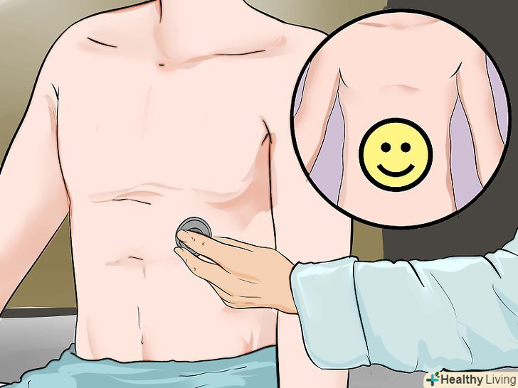 Правильно розташуйте пацієнта.щоб почути серце і живіт, вам знадобиться, щоб ваш пацієнт знаходився в лежачій позі. Щоб почути легені, вам знадобиться, щоб ваш пацієнт сидів. Іншими словами, попросіть вашого пацієнта лягти.[11] Звуки серця, легені і кишечника розрізняються в залежності від позиції пацієнта: тобто, сидяча, стояча, лежача на будь-якому боці і так далі.[12]