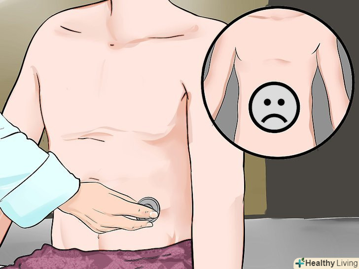 Вислуховування ненормальних черевних звуків. більшість звуків, які ви чуєте, коли слухаєте черевну порожнину вашого пацієнта, - це всього лише звуки травлення. Хоча більшість черевних звуків є нормальними, є певні, які вказують на проблеми. Якщо ви не впевнені в тому, що чутні вами черевні звуки є нормальними, і/або пацієнт має інші симптоми, тоді йому слід відвідати лікаря для подальшого обстеження.[38]- Якщо ж ви не чуєте ніяких черевних звуків, це може означати, що щось заблоковано в животі пацієнта. Це може також позначати запор, і черевні звуки можуть повернутися самі. Але якщо вони не повертаються, то це може бути закупорка. В цьому випадку, пацієнту необхідно подальше обстеження у лікаря.[39]