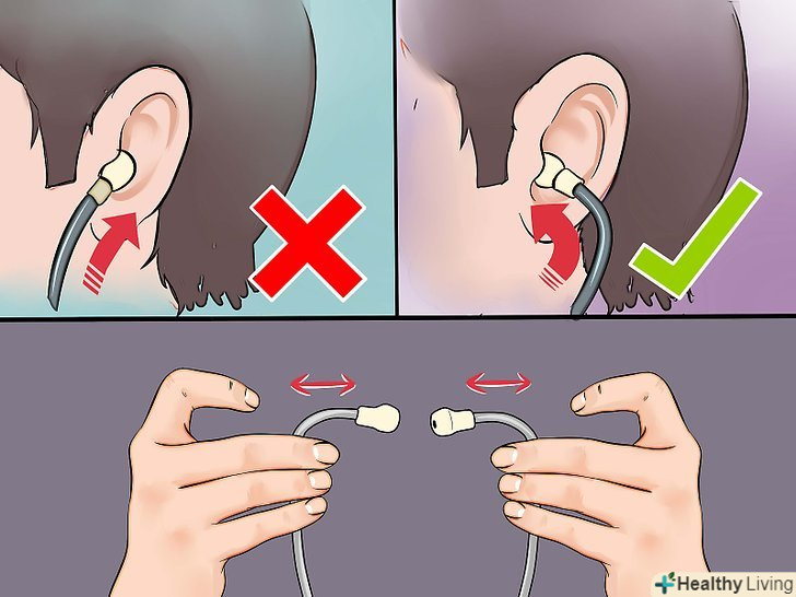 - Якщо вушні наконечники занадто тугі, ви можете пошкодити ваші вуха, і Вам буде важко використовувати Ваш стетоскоп. Щоб послабити натяг, розтягніть стяжки дуже акуратно.[9]