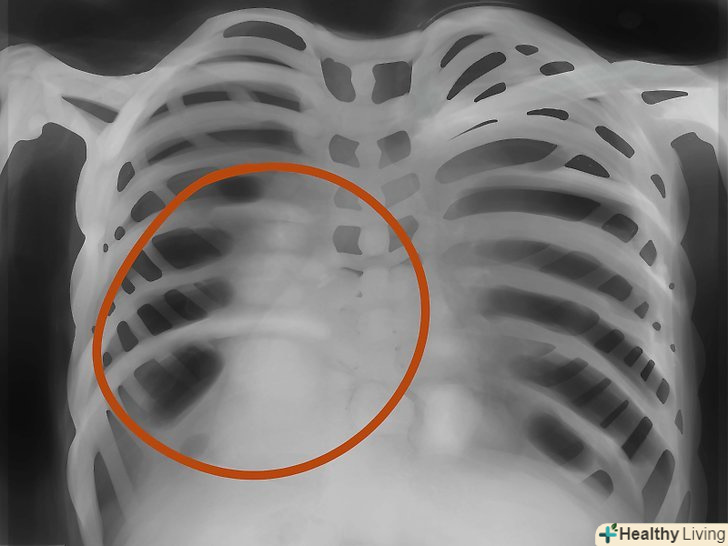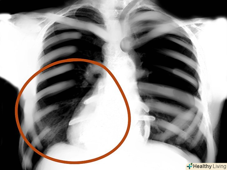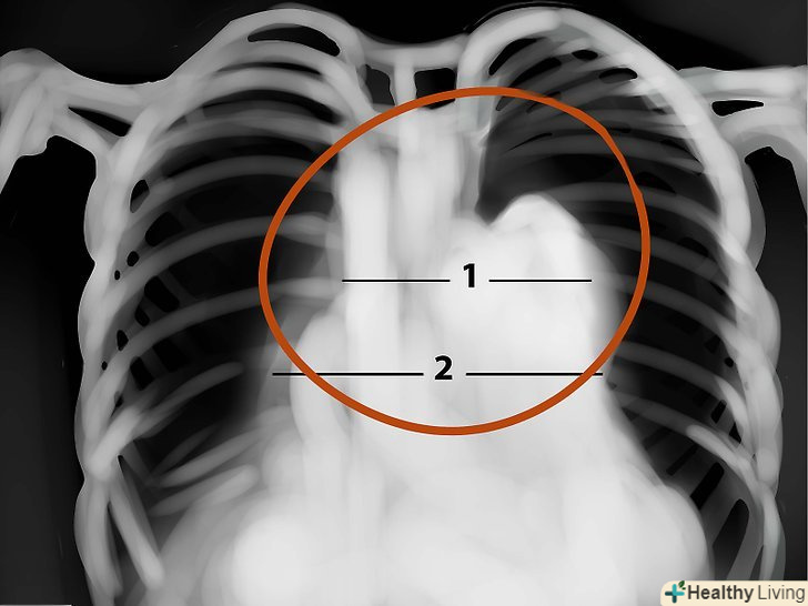 - Розмір серця повинен бути менше половини діаметра грудей на pa-знімку.