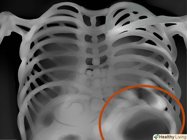 Шлунковий міхур. перевірте, чи є на знімку під серцем шлунковий міхур, затемнений він і видно чи взагалі. Оцініть кількість газу і положення міхура. У нормі бульбашки газу можуть бути в правому і лівому вигинах ободової кишки.