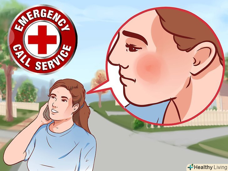 Визначте симптоми.анафілаксія може виникнути після випадкового впливу відомого алергену, а також, якщо людина піддається впливу алергену вперше. У деяких людей навіть може розвинутися підвищена чутливість до алергену, провокуючи алергію на те, що раніше алергічної реакції не викликало. Алергічна реакція може бути настільки сильною, що стає небезпечною для життя. Зверніть увагу на наступні симптоми: [1]- Почервоніння обличчя