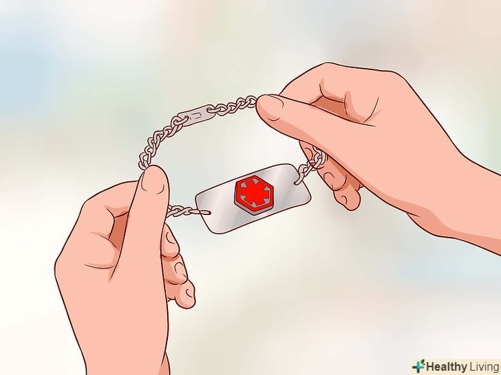 Перевірте, чи є у потерпілого медичний браслет або намисто.якщо ви запідозрили, що у постарілого анафілактичний шок, перевірте, чи немає у нього медичного браслета або намиста. Люди, які страждають від сильних алергій, зазвичай носять їх на всякий випадок.[3]- На цих намистах і браслетах має бути вказано захворювання і додаткова інформація про стан здоров'я.