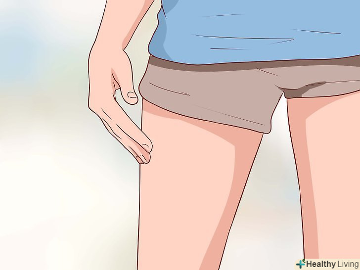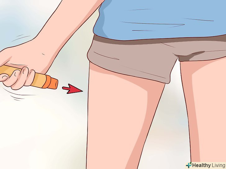 Вколіть Епінефрин у верхню частину стегна.прикладіть Помаранчевий кінець до зовнішньої частини стегна, а потім сильно натисніть. Коли голка ввійде в стегно, ви почуєте клацання.[6]- Зачекайте кілька секунд.