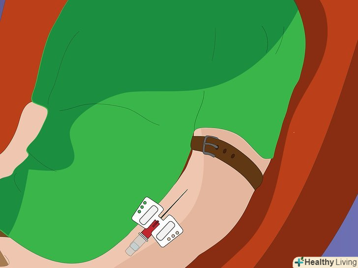 Підготуйте шкіру пацієнта.- Знайдіть вену пальцями і затягніть джгут вище місця уколу.