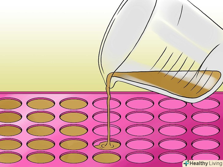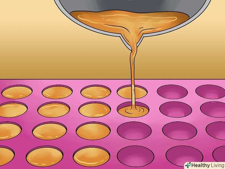 Змастіть формочки для льодяників жиром.для цього можна використовувати кулінарний спрей без запаху.[14]- Обережно залийте гарячу рідину в формочки.