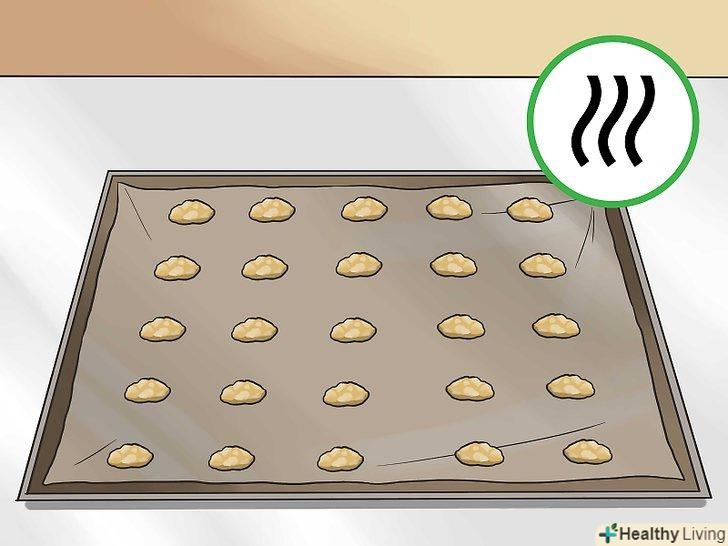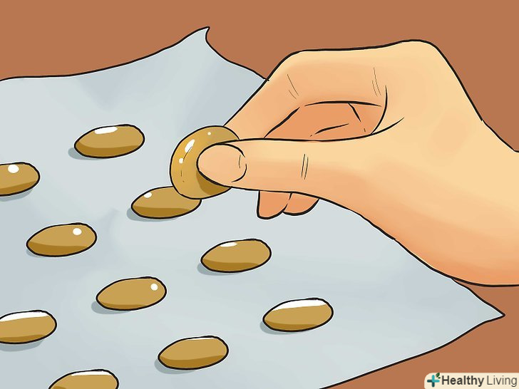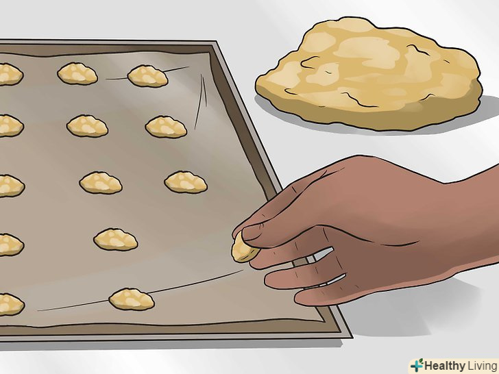 Зробіть з отриманої маси невеликі кульки розміром з чайну ложку. [29]- Викладіть кульки на лист воскової або пергаментного паперу.