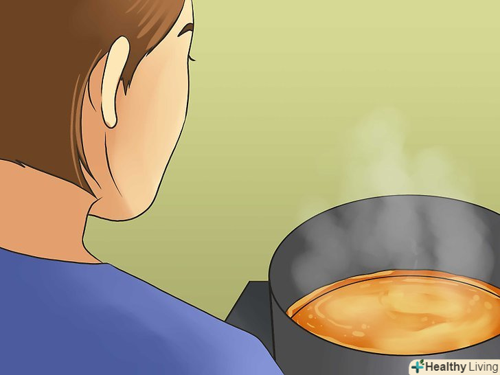 Змішайте всі інгредієнти льодяників від кашлю і розігрійте їх.спочатку залийте в невелику каструлю 1/2 склянки (120 мілілітрів) трав'яного чаю, який ви заварили перед цим, потім додайте 1,5 склянки (360 мілілітрів) меду і 1/2 чайної ложки (2,5 мілілітра) екстракту перцевої м'яти.[20]- Розігрійте суміш на середньому або сильному вогні.
