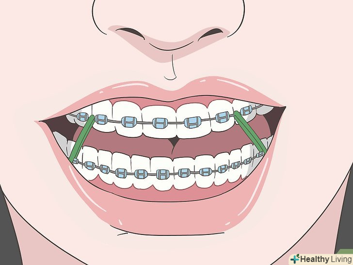 Носіть тяги для брекетів відповідно до вказівок стоматолога-ортодонта.нерідко для виправлення прикусу разом з брекетами використовують спеціальні гумові тяги. Самі брекети призначені для випрямлення зубів, але при наявності дефектів прикусу (недокуса або перекусу) стоматолог-ортодонт може порекомендувати прикріпити до брекетів спеціальні гумові тяги. Вони кріпляться за гачки на відповідних парах брекетів (зазвичай з кожного боку на передньому і задньому брекетах протилежних щелеп).[46]- Гумові тяги носять цілодобово і щодня до тих пір, поки стоматолог-ортодонт не прийме рішення їх зняти.[47]