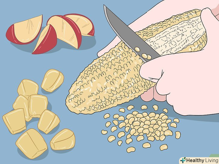 - Кукурудзи (якщо тільки це не окремі відварні зерна, уникайте вживання відвареної кукурудзи в качанах)[15] .