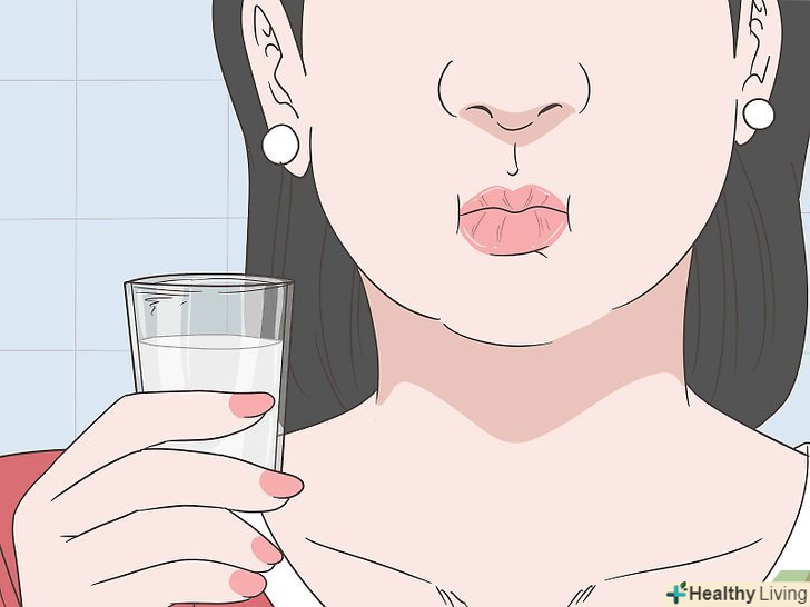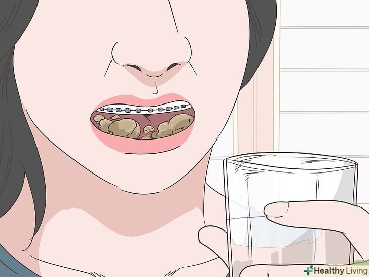 Полощіть рот сольовими розчином.ваші зуби, ясна, язик і щоки можуть хворіти протягом декількох днів після установки або підтяжки брекетів. Це нормально і можна виправити за допомогою цілого ряду способів. Найпростіший спосіб зняти запалення в роті-полоскати ротову порожнину сольовим розчином.[30]- Розмішайте чайну ложку солі в двохсотграмовому склянці чистої теплої води. При цьому не варто брати занадто гарячу воду, щоб випадково не обпекти рот.[31]