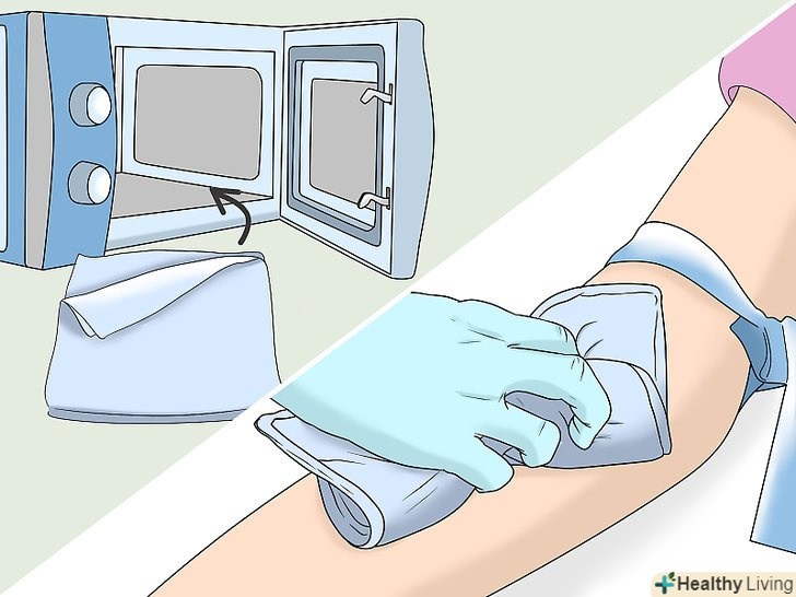 Прикладіть до відповідної ділянки теплий компрес, якщо вени все ще не видно.тепло розширює вени, в результаті чого їх легше знайти. Якщо вам потрібно розігріти місце ін'єкції, потримайте вологий рушник в мікрохвильовій печі протягом 15-30 секунд, після чого прикладіть його до вени. Можна також потримати місце ін'єкції безпосередньо в теплій воді.[6]- Інші способи розігріти все тіло полягають в тому, щоб випити що-небудь тепле, наприклад чай або кава, або прийняти теплу ванну.