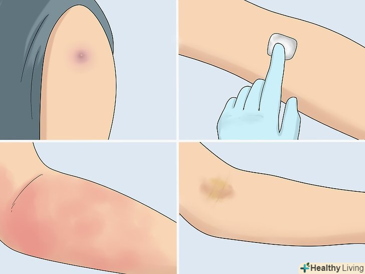 Зверніться за медичною допомогою при надзвичайних ситуаціях.після ін'єкції необхідно стежити, чи не виникнуть деякі ускладнення. Проблеми можуть проявитися як відразу після ін'єкції, так і в наступні дні. Негайно зверніться за медичною допомогою в наступних випадках:[15]- Ви потрапили в артерію і не можете зупинити кровотечу.