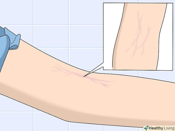 Пошукайте вену на руці на внутрішній частині ліктя.у цьому місці руки робити ін'єкцію найбільш безпечно, і вену зазвичай легко знайти. Запитайте у пацієнта, в яку руку йому краще зробити ін'єкцію. Після цього пошукайте на відповідній руці вену. Якщо вам не вдасться знайти вену відразу, можливо, доведеться вжити додаткових заходів, щоб вона виступила під шкірою.[2]- У разі регулярних ін'єкцій у вену слід чергувати праву і ліву руки, щоб уберегти вени від пошкоджень.
