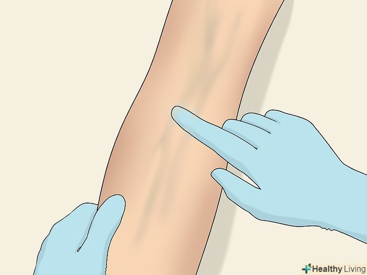 Намацайте вену пальцями.після того як ви знайдете вену, покладіть на неї один палець. Злегка помасажуйте вену пальцем зверху вниз протягом 20-30 секунд. В результаті Відень розшириться, і її легше буде побачити.[5]- Не натискайте занадто сильно! Помасажуйте вену пальцем лише злегка.