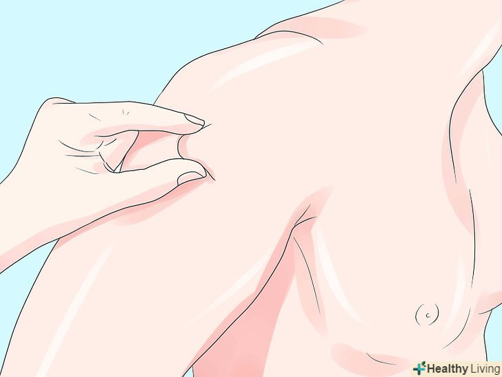 Затисніть (не здавлюйте) місце уколу.великим і вказівним пальцями затисніть шкіру в місці уколу. Перед введенням голки шкіра повинна бути досить щільною, саме для цього її і потрібно затискати.[8]- Для ефективної підшкірної ін'єкції постарайтеся відтягнути пару сантиметрів шкіри.