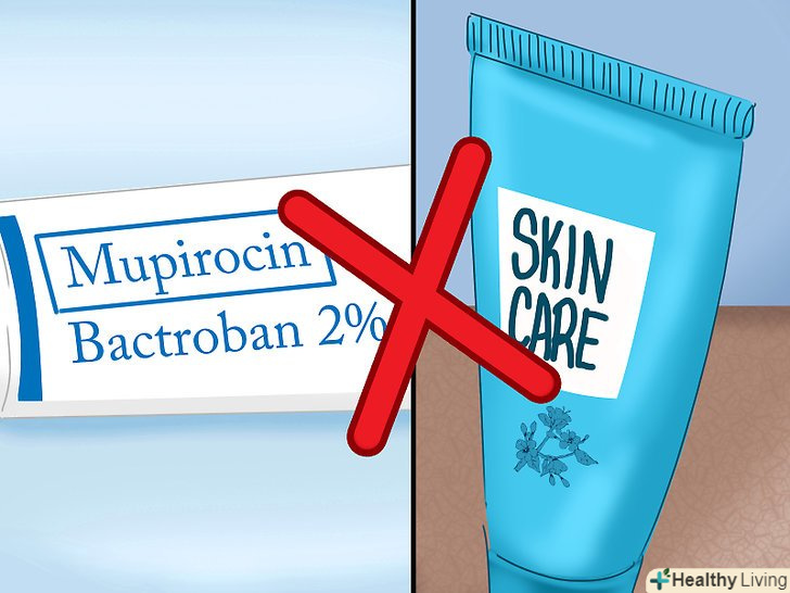 Не застосовуйте Бактробан разом з іншими мазями. хоча випадки поганої реакції Бактробану і мупіроцину на інші мазі і не відомі, не наносите інші креми, лосьйони і мазі на ту ж ділянку шкіри, куди ви наносите Бактробан, так як це може знизити його ефективність.[11]- Якщо вам необхідно нанести Бактробан і інший крем на один і той же ділянку шкіри, нанесіть їх з інтервалом хоча б в 30 хвилин один після одного.