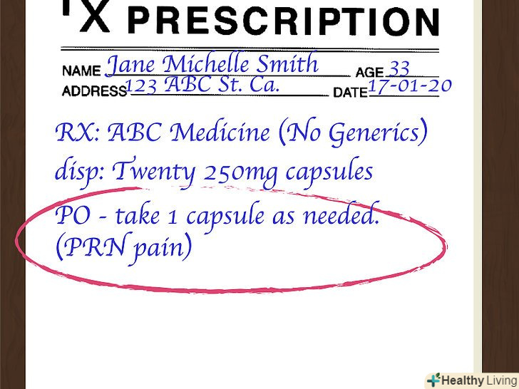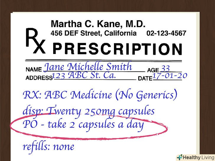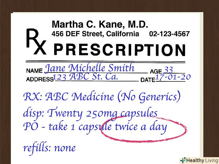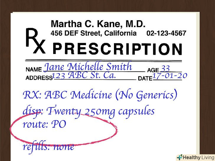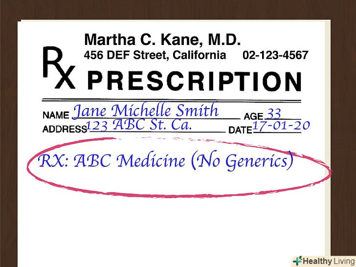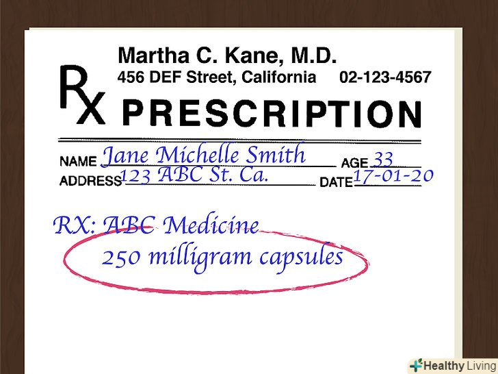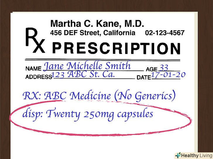 Напишіть назву ліки. ви повинні використовувати загальну незапатентовану назву товару, а не його торговельну назву.[2]- Використовуйте торговельну назву препарату тільки якщо це зазначено в умові рецепта.
