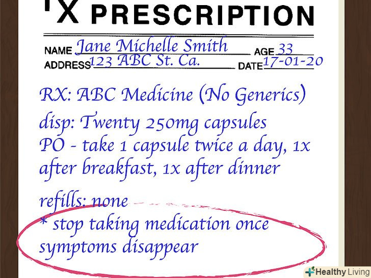 Напишіть Інструкцію про те, як і коли приймати ліки.- Найпоширеніші вказівки:[4]