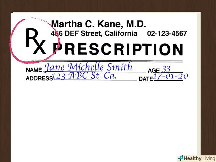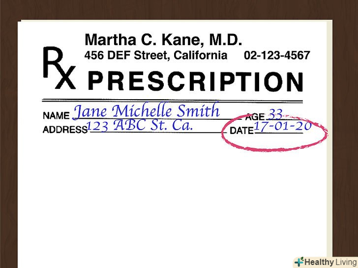 Запишіть як мінімум два ідентифікатора для пацієнта. ідентифікатори-це та частина інформації, яка ідентифікує (визначає) пацієнта.- Повне ім'я та дата народження-основні ідентифікатори. Якщо рецепт заповнюється не в лікарні, то вказується телефонний номер пацієнта і / або домашню адресу.