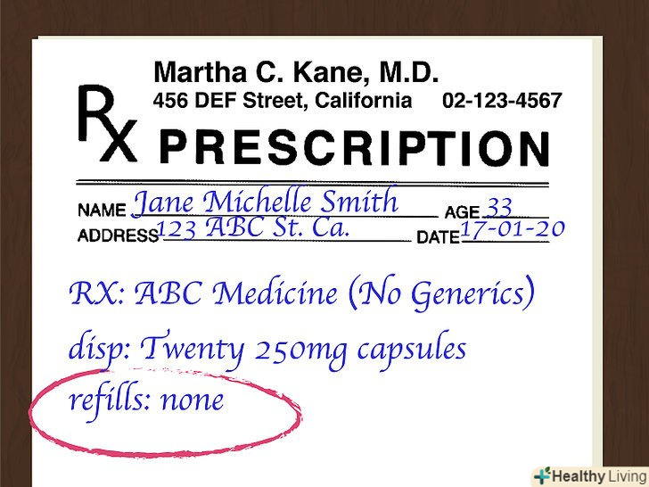 Надайте інформацію.Ваше повне ім'я і Ваш контактний телефон також повинні бути вказані в рецепті. Вкажіть своє повне ім'я, адресу і назву організації, в якій ви проходили медичну практику, а також її контактний телефон.- Зауважте, що варто також вказати контактний номер адміністрації по боротьбі з наркотиками або наркологічного диспансеру.