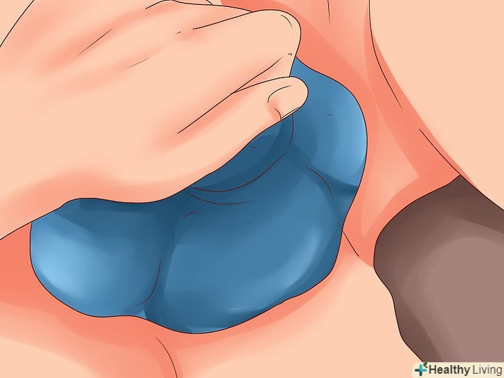 Закріпіть припарку на потрібній ділянці пов'язкою.зробивши акуратний пакетик для припарки, покладіть його на уражену ділянку, так щоб обгорткова плівка була зверху, а інша сторона стикалася зі шкірою. Залежно від вашого захворювання, можливо, варто спочатку ретельно очистити цю ділянку водою з милом.- Якщо у вас виникла закладеність в грудях або пазухах, то припарку найкраще покласти на груди, як раз під підборіддям.