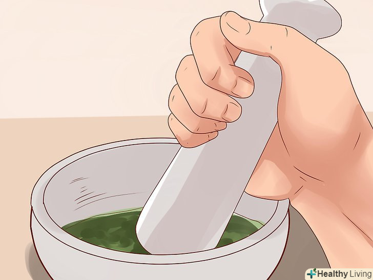 Підготуйте сушених або свіжих трав.хоча краще використовувати свіжі трави, так як в них міститься більше поживних речовин, сушені трави також ефективні, а іноді і більш доступні для припарок. Якщо ви вибрали потрібні трави, то припарку можна робити як зі свіжих, так і з сушених трав. [7]- Розітріть сухі трави за допомогою ступки і маточки, а потім пересипте порошок в миску. Залийте порошок гарячою водою так, щоб він був весь покритий, і вийшла пастоподібна маса. Не варто занадто розмочувати трави, просто повільно додайте достатню кількість води, щоб змочити трави і змішати їх в пасту.