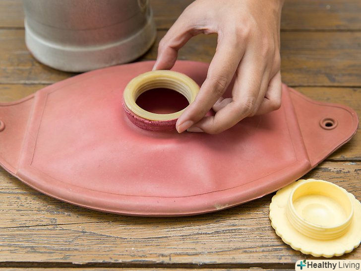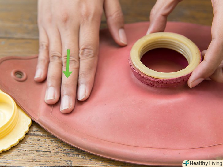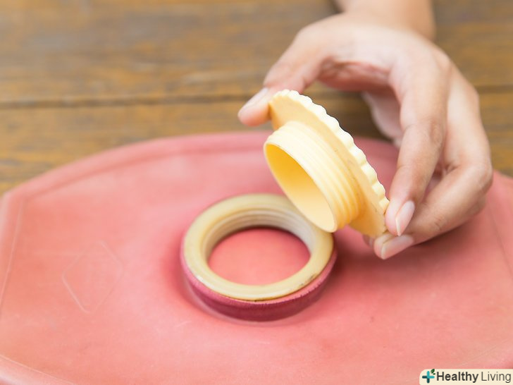 Надіньте на грілку кришку і закрутіть її.після того як ви видавите з грілки повітря, щільно закрутіть кришку. Закрутіть кришку до упору, а потім повільно переверніть грілку догори дном, щоб перевірити, чи не протікає вона.[4]