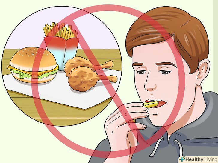 Утримуйтеся від жирної і смаженої їжі.крім регулярного харчування невеликими порціями протягом усього дня, при прийомі медикаментів краще уникати жирної, смаженої і занадто солодкої їжі, так як вона сприяє нудоті і блювоті.[4] намагайтеся їсти легкі і натуральні страви, багаті білками, наприклад бутерброд з м'ясом індички без майонезу.- Краще не готувати вдома такі страви, які залишають після себе неприємний запах (наприклад, жирну їжу, страви з часником і цибулею).