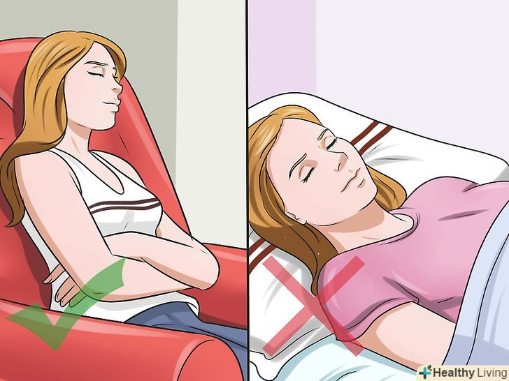 Відпочивайте, але при цьому не лягайте.відпочинок після помірного прийому їжі і ліків сприяє травленню, допомагає розслабитися і полегшити нудоту.[6] необхідно утримуватися від надмірної фізичної активності хоча б протягом 30 хвилин після їжі. Однак під час відпочинку не лягайте, так як це погіршує травлення і може викликати печію, що сприяє нудоті.- Замість того, щоб прилягти на диван, влаштуйтеся в зручному кріслі і почитайте або подивіться телевізор.