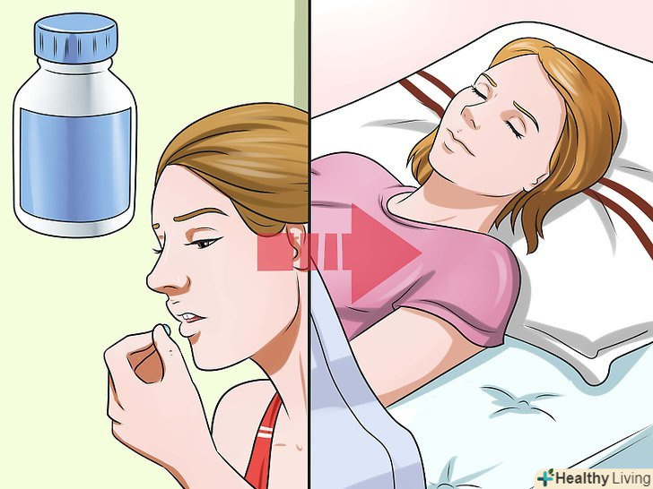Приймайте деякі ліки безпосередньо перед сном.щоб уникнути нудоти через пов'язаного з ліками запаморочення, іноді при прийомі медикаментів слід враховувати час доби.[8] наприклад, селективні інгібітори зворотного захоплення серотоніну (вид антидепресантів) краще приймати перед сном, так як під час сну запаморочення не призводить до активації центру блювоти в головному мозку.- Перед сном можна приймати будь-які препарати, проте прийом їжі незадовго до сну може викликати нетравлення шлунка і печію. Зважаючи на це можна злегка перекусити приблизно за годину до сну, а потім прийняти медикаменти безпосередньо перед тим, як лягти спати.