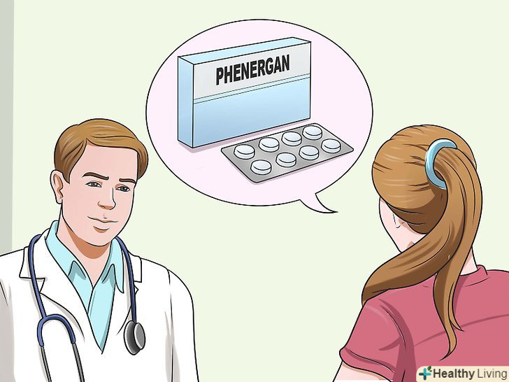 Дізнайтеся у лікаря щодо антагоністів дофамінових рецепторів.якщо не допомогли зміна дозування і зміна препарату, лікар може призначити вам засіб від нудоти. Наприклад, антагоністи дофамінових рецепторів особливо ефективно запобігають нудоту від сильнодіючих болезаспокійливих засобів (опіоїдів), але вони можуть виявитися корисними і в тому випадку, якщо нудота викликана іншими препаратами.[11]- Антагоністи дофамінових рецепторів зводять до мінімуму дію дофаміну на центр мозку, що відповідає за нудоту і блювоту, який розташований в довгастому мозку.[12]
