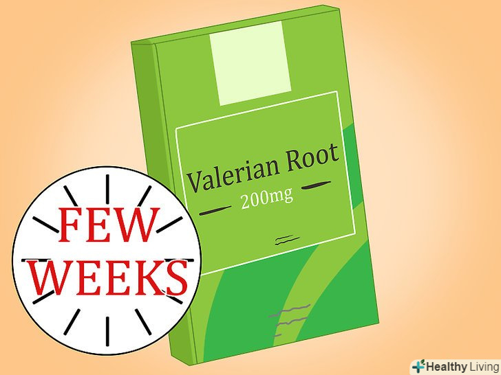 Приймайте корінь валеріани протягом декількох тижнів.не чекайте швидких результатів. Поліпшення ви помітите через кілька тижнів після початку прийому даного рослинного препарату. Якщо ви хочете отримати результат, приймайте корінь валеріани щодня протягом, принаймні, двох-трьох тижнів.[6]
