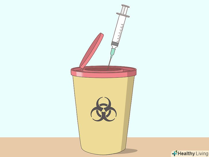 Утилізуйте голку належним чином.не викидайте використані голки разом зі звичайним сміттям. Ви можете купити в аптеці проколостійкий контейнер або зробити свій власний.- Закріпіть на кавовій банці кришку за допомогою клейкої стрічки. Проріжте в кришці досить широку щілину, щоб через неї могла пройти голка. Підпишіть банку»використані голки".