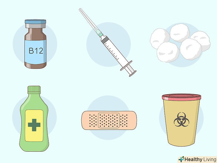Підготуйте все необхідне.підготуйте у себе в будинку чисту робочу поверхню або інше місце, де ви будете проводити процедуру. Вам знадобиться: [10]- Призначений розчин вітаміну B12;