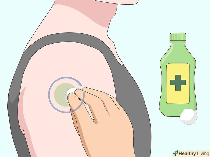 Очистіть місце ін'єкції.звільніть від одягу Вибране для ін'єкції місце і забезпечте доступ безпосередньо до шкіри. Потім умочіть ватний тампон в медичному спирті. Круговими рухами протріть шкіру ватним диском.- Дайте місцю висохнути.