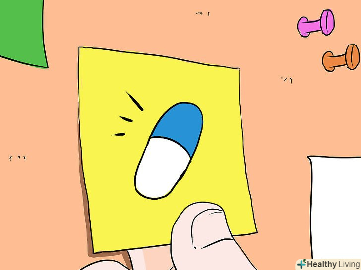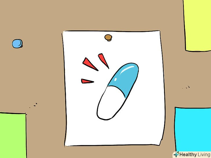 Заповніть такий лист інформацією і повісьте на видному місці.записуйте в таблицю всі зміни щодо прийому таблеток. Ви можете записати їх в тому порядку, в якому ви приймаєте їх. Як тільки ви закінчите, повісьте список на самому видному місці, щоб завжди мати такий список перед очима. Деякі ідеї для місць зберігання:[9]:- У ванній кімнаті, на кухні, поруч з ліжком або на журнальному столику.