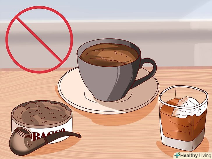 Уникайте кофеїну, тютюну та спиртного.на час зниження дозування вам варто звести споживання кофеїну, тютюнових виробів і спиртних напоїв до мінімуму. Алкоголь, наприклад, утворює у вашому організмі токсини, які можуть перешкодити процесу відновлення.[6]