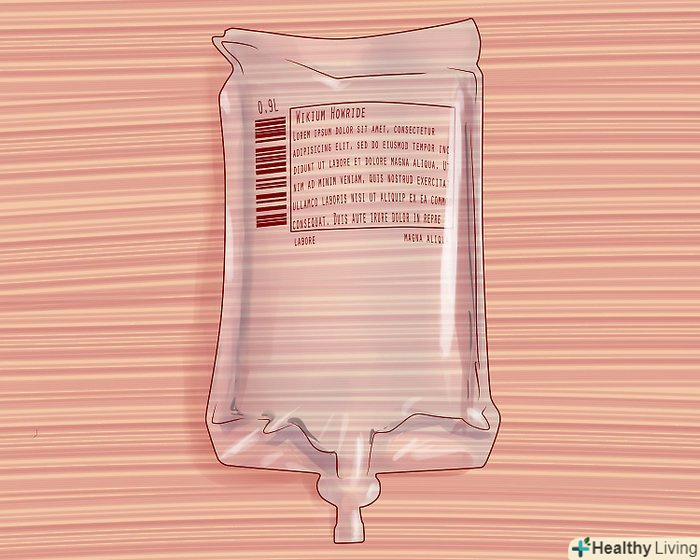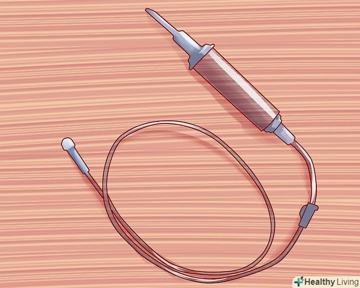 Вирішіть, який набір ви будете використовувати. набір - це трубка і затиск, за допомогою яких регулюється кількість рідини. Якщо ліки повинні надходити в кров зі швидкістю 20 крапель в хвилину (тобто 100 мілілітрів на годину), використовується макронабор. Як правило, дорослим ставлять крапельницю в макронабор.[2]- Мікронабор використовується в тому випадку, якщо в кров має надходити 60 крапель в хвилину. Немовлятам і маленьким дітям зазвичай ставлять мікронабор.