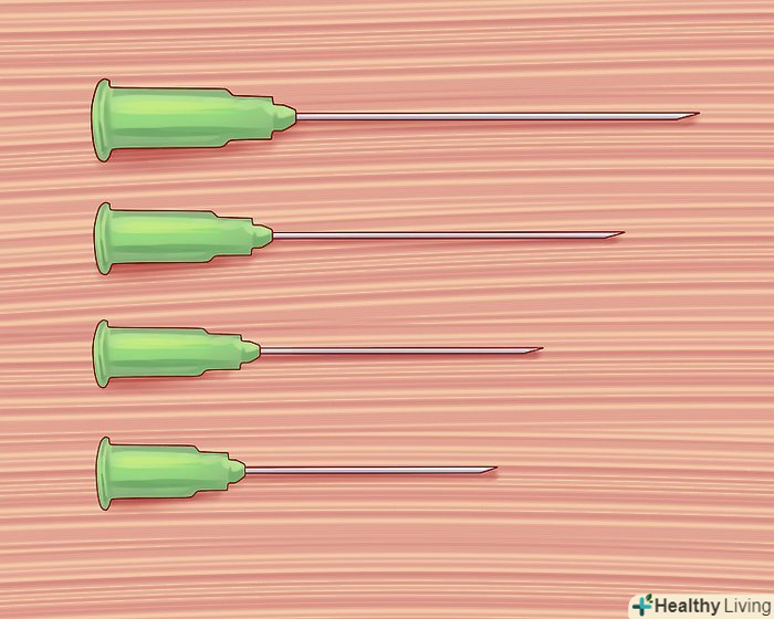 Візьміть гру відповідного розміру.як не дивно, чим більше номер голки, тим вона тонша. 14-найбільша голка, і зазвичай вона використовується для зняття симптомів шоку і травми. 18-20-це звичайна голка, яка застосовується при лікуванні дорослих. 22-це тонка голка, яку зазвичай використовують при роботі з дітьми (немовлятами і маленькими дітьми).[3]
