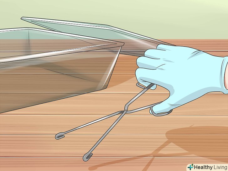 Візьміть все необхідне для стерилізації.при стерилізації потрібно зробити все можливе, щоб після неї голка не забруднилася.- Візьміть щипці або ложечки для стерилізації, щоб дістати голку з ємності для стерилізації. Не торкайтеся до простерилізованої голці руками або рукавичками, так як на них можуть залишатися забруднюючі частинки.